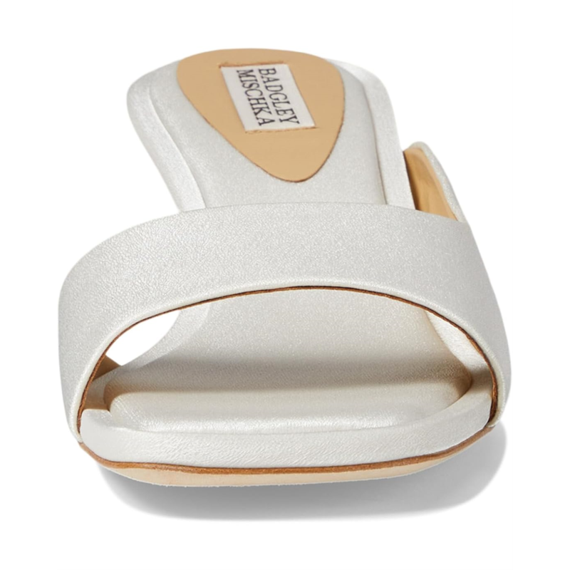 - Get the best of both comfort and fashion by complementing your everyday looks with the Badgley Mischka Baila Sandals. The slip-on style mule sandals feature an open squared toe design and a classy kitten heel. These are crafted with a leather upper, breathable leather lining, and foam insole.
