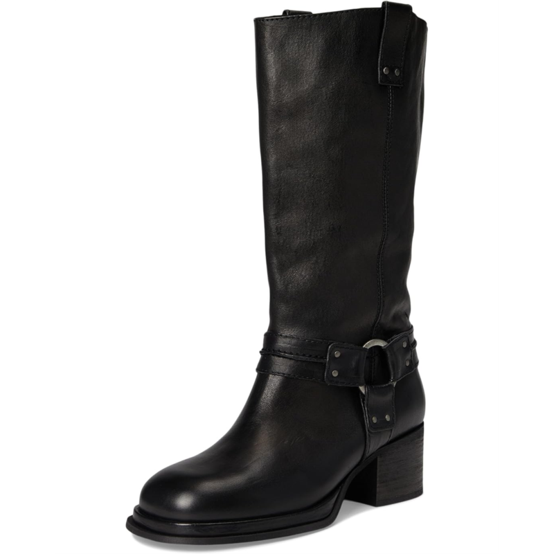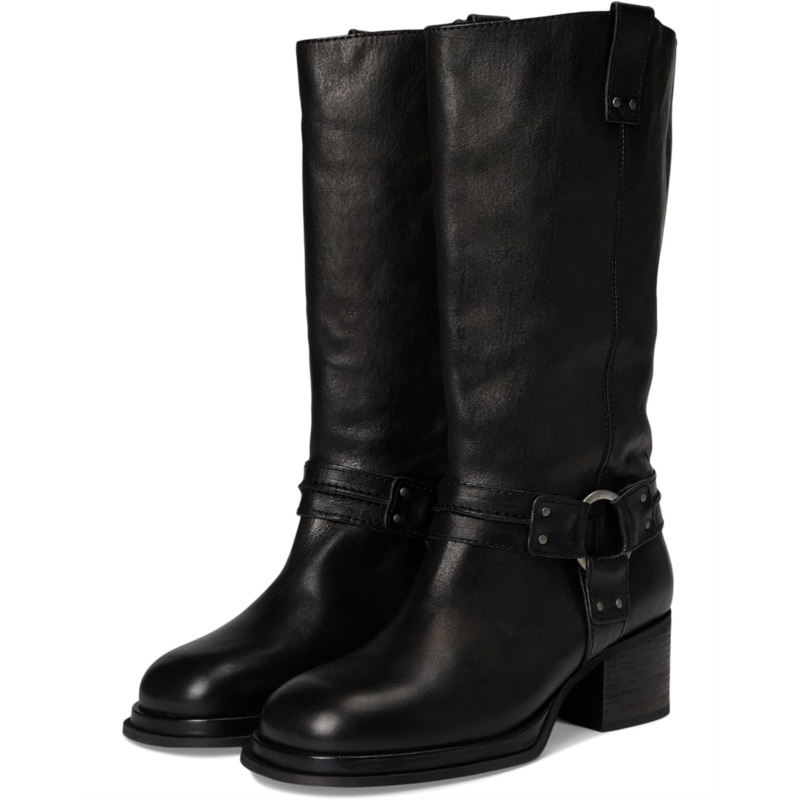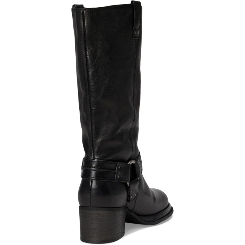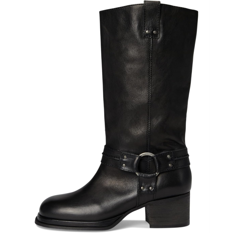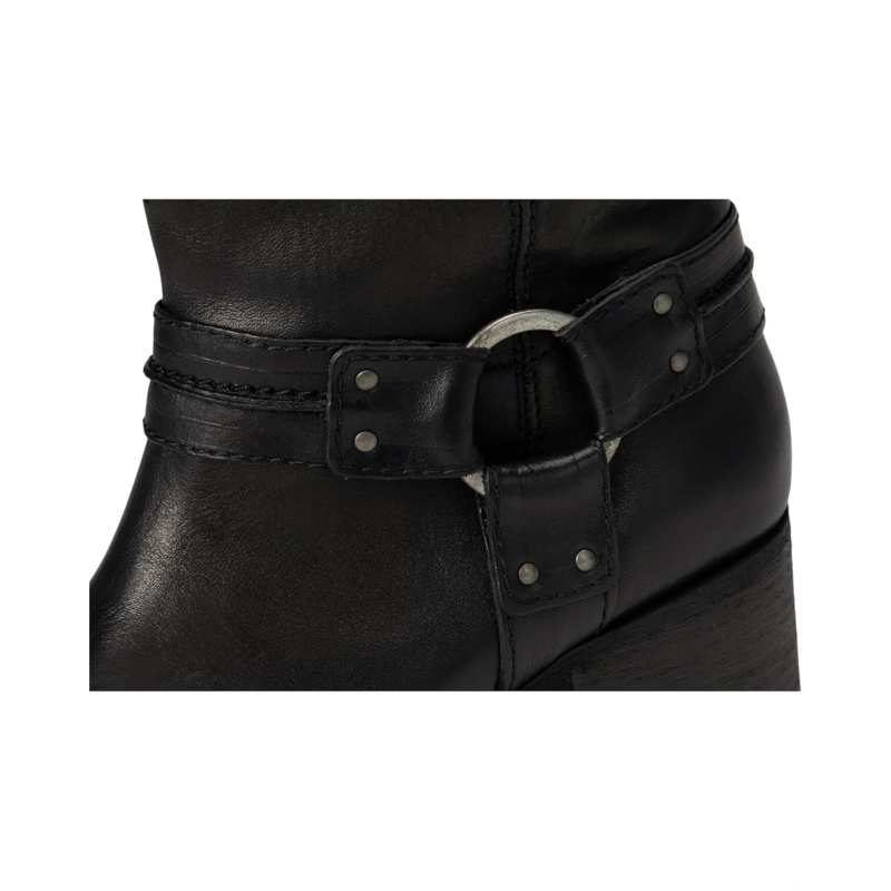 - Step in style choosing these Anok Harness Moto Boots from Free People, featuring a shiny finish, a metal harness detail, and a stacked heel for a bold, heritage-inspired statement pair. Made from rich leather upper with a shiny finish, these boots feature a round toe design for an effortless look.