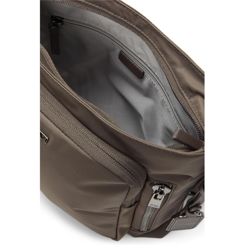 - Channel effortless elegance while carrying the highly functional Tumi Tyler Crossbody. The interior of this compact bag features a zippered pocket, two media pockets, open pocket, leather card pocket, and leather pen loop key leash.