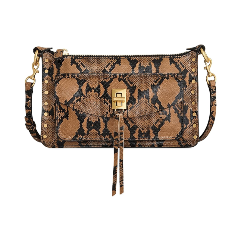 - Elevate your style game carrying the Rebecca Minkoff Darren Mini Top Zip Xbody. This chic crossbody bag is crafted from luxurious leather and punctuated with dainty studs along the sides for a touch of edgy flair. The detachable, adjustable shoulder strap features studded trim, while the zippered top closure with leather tassels adds a stylish finishing touch.