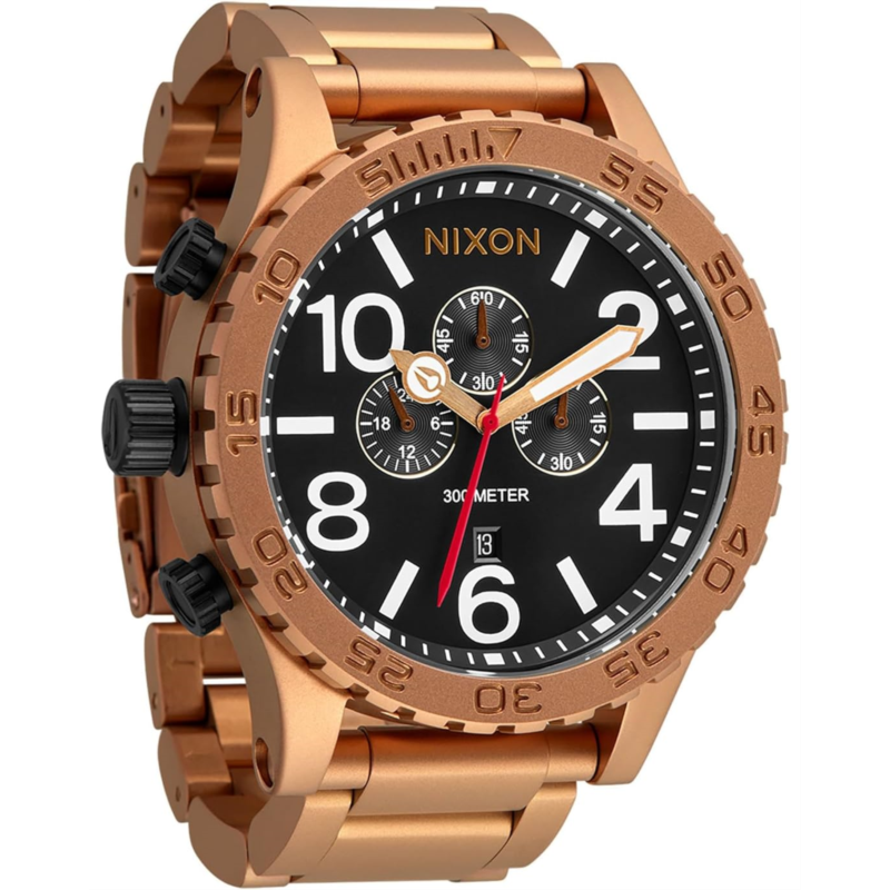 - Telling time has never been so spooky and cool wearing the Nixon 51-30 Chrono featuring a stainless steel case and link bracelet, and gunmetal-ton dial face with creepy hand and planchette details.