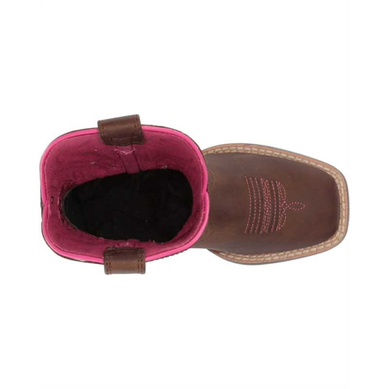 - Square-toe western boot with boot pulls for easy on-and-off.