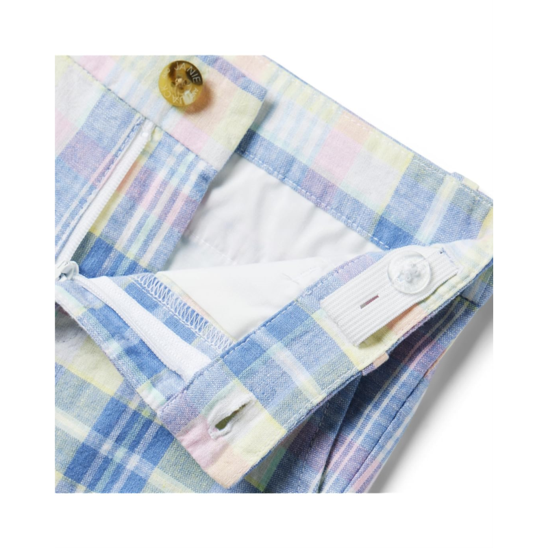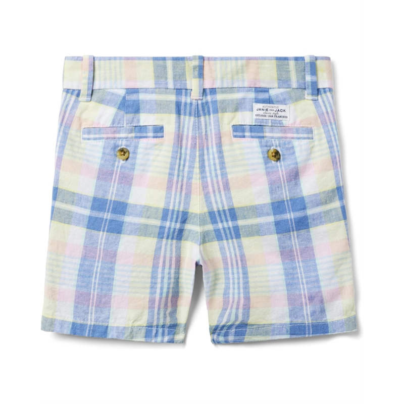 Give your little one a stylish look with the Janie and Jack Linen Plaid Short. Featuring beltloop waistband, zip-fly button closure, two side hand pockets and two back pockets with button closure. Crafted from soft material, these shorts have straight hemline and brand tag on the back.