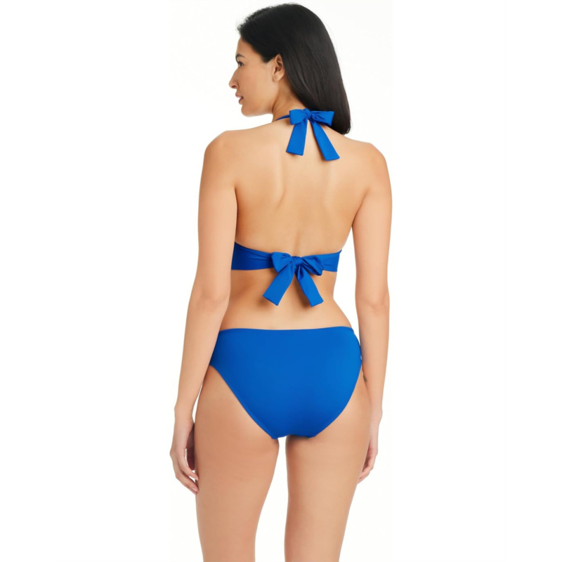 Get ready to step in the water by wearing the Bleu Rod Beattie Ring Master Banded Halter Top. The statement top has an under-bust band for additional support, removable soft cups for customized comfort, ties at the back and back for a custom and secure fit, and small gold ring detailing that elevates the aesthetics. The swimwear top combines comfort and functionality that makes it a must-have in your closet.