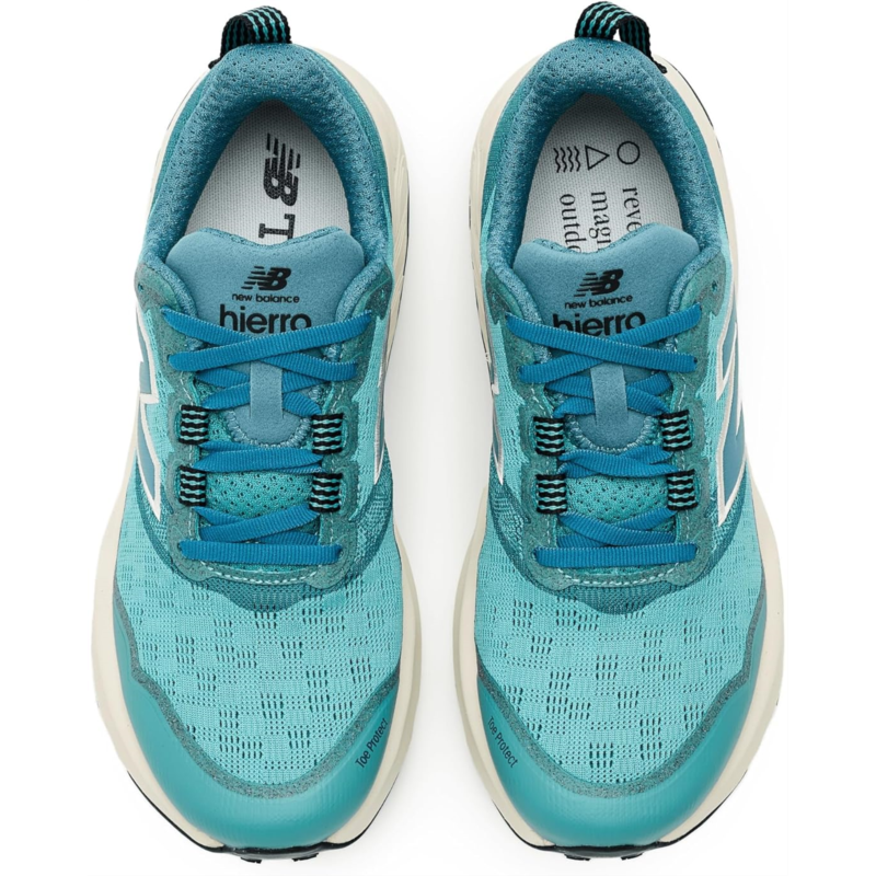 - Take every adventure to the next level sporting the New Balance Fresh Foam X Hierro v9, engineered for peak performance on rugged terrain. The breathable mesh upper with abrasion-resistant detailing and Toe Protect shields against rocks and debris, while the gusseted tongue ensures a secure fit. A dual-density Fresh Foam X midsole blends a firmer bottom layer for stability with a plush top layer for all-day comfort. The Vibram outsole-with an enhanced tread pattern, larger lugs, and micro-traction-delivers best-in-class grip on any terrain. Finished with a cotton lining, EVA insole, and durable rubber outsole, this lace-up trail beast is built for adventure!