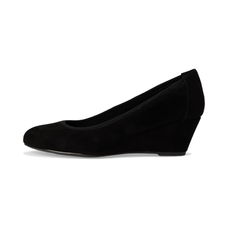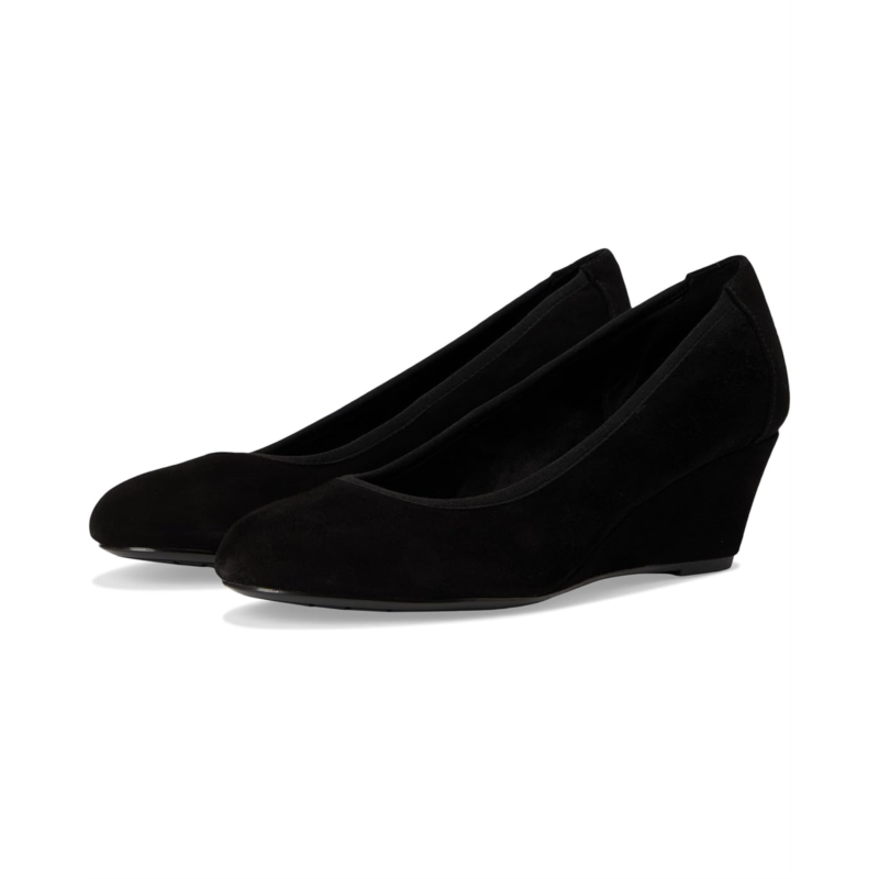 Stay stylish and supported effortlessly donning Rockport Rita dress wedges, where style meets supreme comfort. Crafted with a sleek leather upper and a refined almond toe, these slip-on beauties are designed for your on-the-go lifestyle. The cushioned insole and advanced truTECH technology provide lightweight shock absorption and exceptional arch support, ensuring all-day comfort. A durable synthetic rubber outsole keeps every step secure, while the polyester lining ensures a smooth fit.