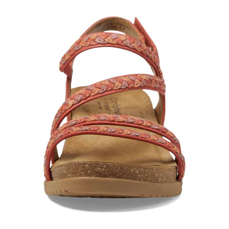 Give your feet the soft touch of comfort while you are going places wearing Comfortiva Silvia Sandals. The sandals are crafted with an asymmetrical woven leather upper, polyester lining, and a cork padded footbed. The adjustable hook-and-loop closure offers a secured fit and the wedge heel elevates the look.