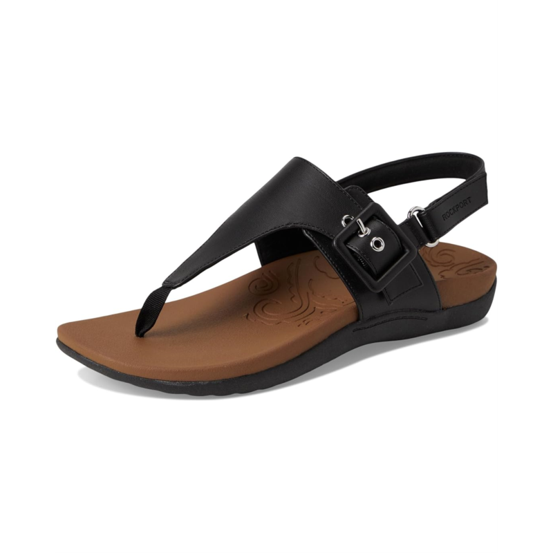 Simplicity and comfort blend together to bring you the Rora casual sandals from Rockport. These sandals feature a slingback strap and an open, round toe design. Their cushioned EVA footbed and durable synthetic rubber outsole provide all-day comfort. The faux leather upper is styled with buckle and hook-and-loop straps for a secure fit, while the cushioned arch support ensures a comfortable walking experience.