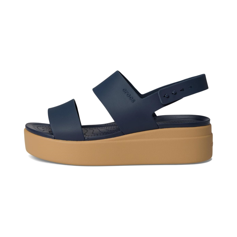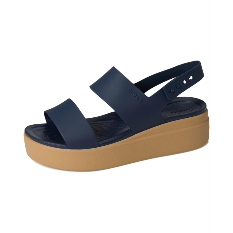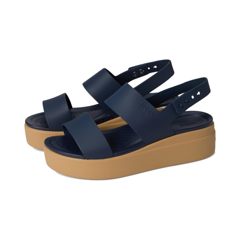 Strike the perfect balance between fashion-forward design and comfortable lift, wearing the Crocs Brooklyn Low Wedge Sandals for confident strides. These open round-toe sandals come with soft, flexible Matlite uppers, LiteRide foam footbeds for superior all-day comfort, and an elegant two-strap silhouette with heel straps for total security. The deep heel cups and a raised insole profile ensure added support & stability, while the adjustable smart buckle heel straps with pushpin closures make on/off a cinch.