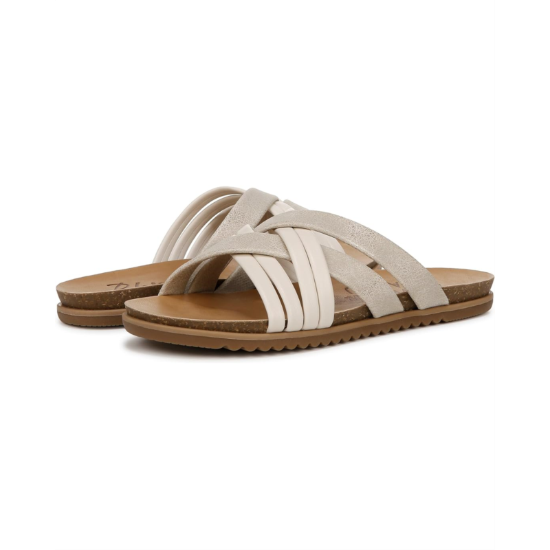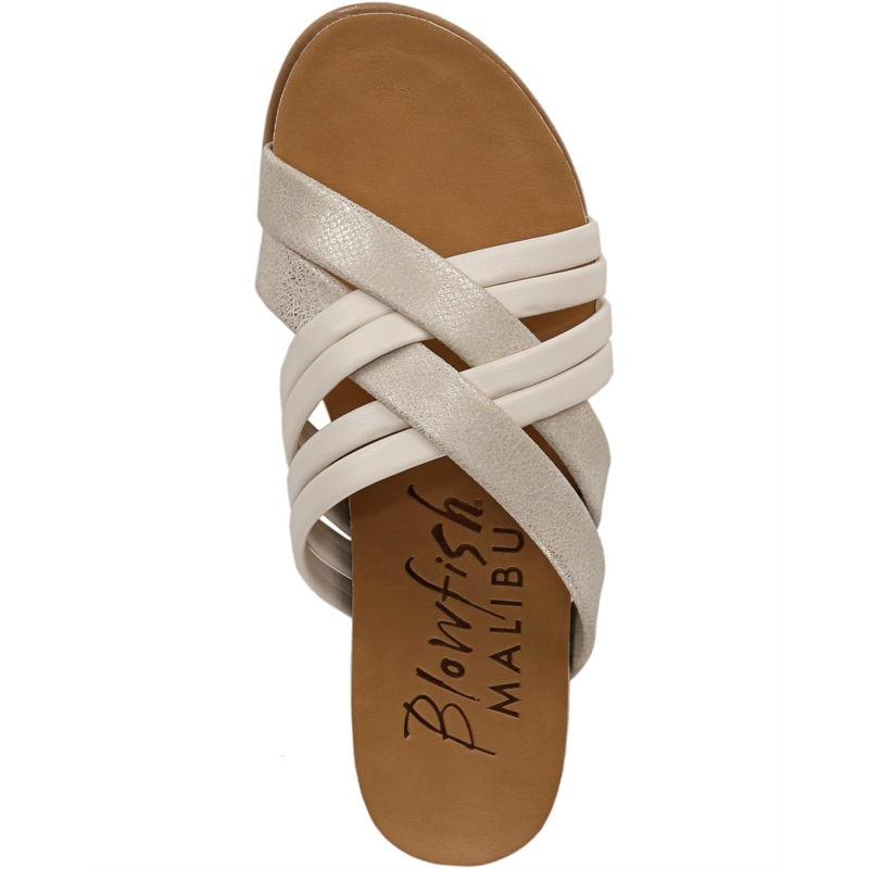 Keep going on the streets of the town wearing the Blowfish Malibu Majie footwear. Made of faux leather upper, the footwear features multistrap interwoven two-tone metallic design. A faux leather lining, and cushioned BLOOM foam footbed provides all day comfort. Low wedge heel and slip-on style with wide silhouette ensures your feet keeping going throughout the day.