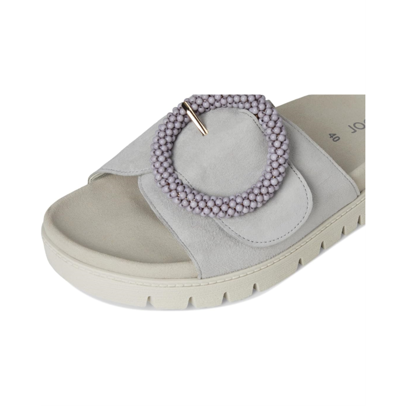 The Gabor Gabor 63.745 features a subtle heel, offering a sophisticated and comfortable boost in height. A rip tape fastening disguised as a buckle trim rests atop the sandal, providing a secure fit to wear through the day!