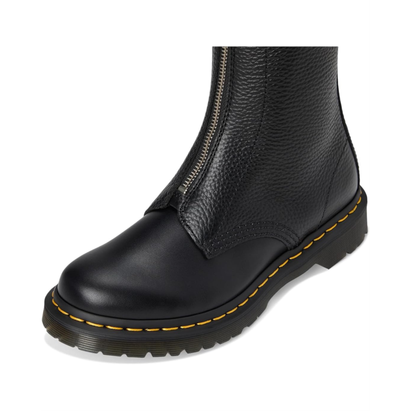 Walk with attitude wearing the Dr. Martens 1B99 Front Zip Leather Mid Calf Boots. Crafted from leather upper, and EVA insole, this pair of boots features zippered front, hook-and-loop closure for easy access, scripted heel-loop, grooved sides and yellow stitch detailing. It comes with round toe design, back pull-tab, and ankle-length silhouette.