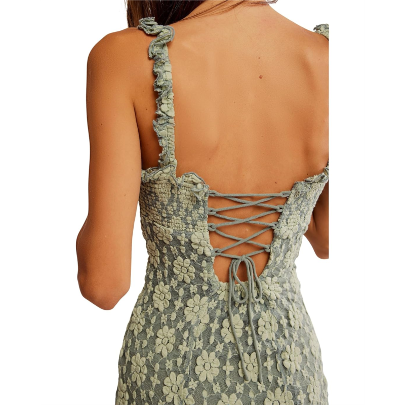The Free People Lucinda Lace Midi brings ethereal beauty to life with every delicate detail. Designed in a classic, fitted silhouette, this dreamy dress hugs in all the right places while the pencilkorea shape adds timeless charm. Its floral lace embroidery weaves vintage romance into every inch, complemented by a staple square neckline for that perfect femme flourish. Ruffled shoulder straps add a flirty twist, while pleating at the bust and a dainty tie at the chest enhance the silhouette with soft structure. The lace-up back detail isnt just a showstopper-its a customizable fit youll adore.