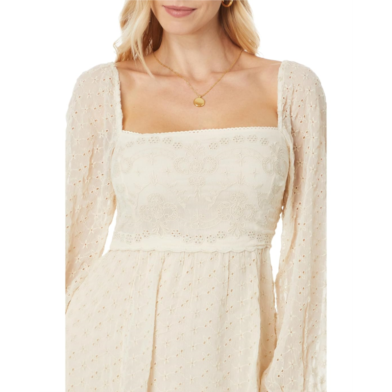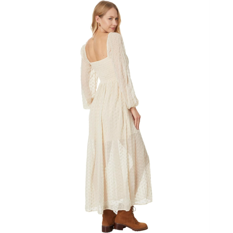 Designed with embroidered eyelet detail and semi-sheer long sleeves, the Free People Malina Maxi dress is a timeless dress that is perfect to dress up or down. The polyester fabrication of the dress offers superior comfort and breathability. This maxi dress is styled with a low open-back design with a smocked band for a perfect fit. The square neckline, elasticated cuffs, and straight hem add to its appeal. Lined for better coverage, this embroidered dress makes a versatile addition to your wardrobe.