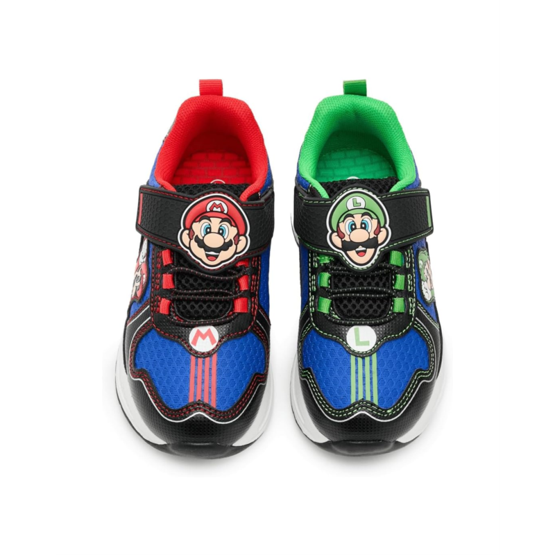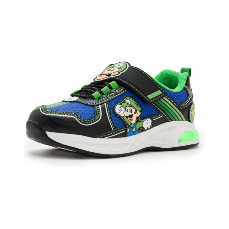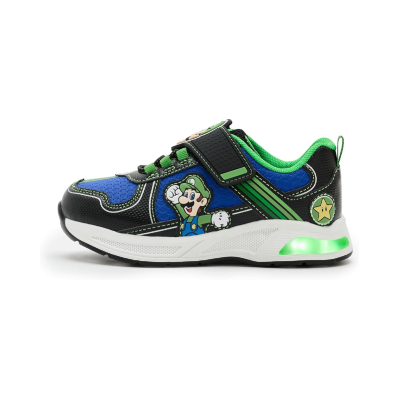 - Power up every step with these Ground Up Mario And Luigi Lighted Athletic shoes! Durable, comfy, and fun-perfect for active young gamers. It features a polyurethane upper, polyester lining, and a padded insole.