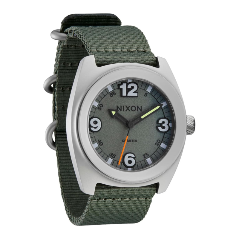 - The go-anywhere, do-anything watch - Nixon Clutch 42. Made for those whose fashion is function, the Clutch 42 is geared up to get down on the only schedule that matters. Yours. Powered by a reliable Miyota Japanese movement, it ensures accurate timekeeping with minimal maintenance. The abrasion-resistant, quick-drying nylon band offers durability and comfort, making it ideal for active lifestyles. Its standout feature is the dimensional dial packed with lume, providing bold visibility and a striking look.