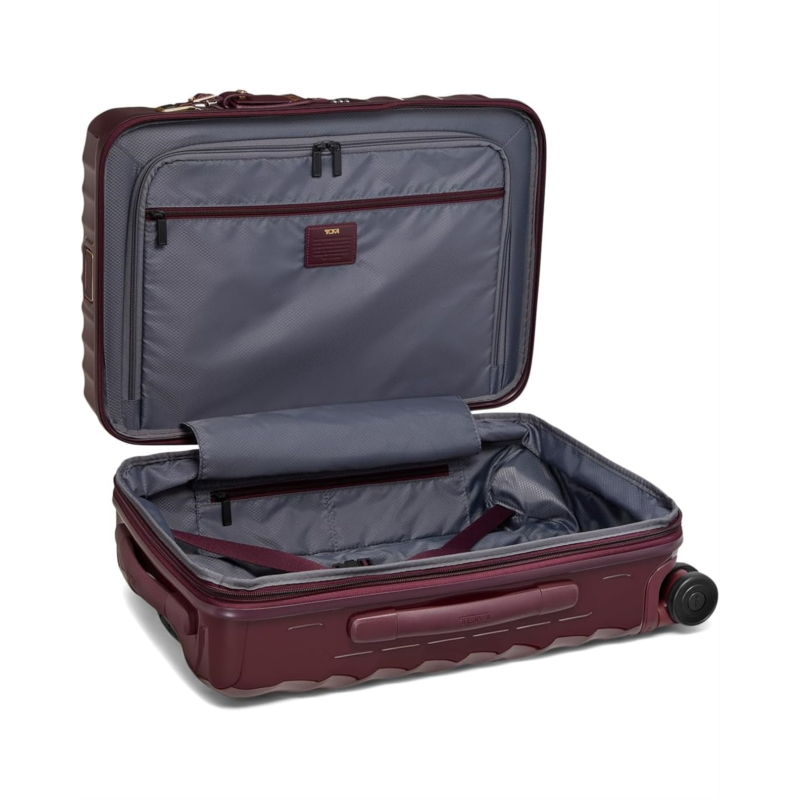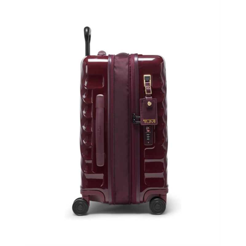 - Striking from any distance, this Tumi 19 Degree International Expandable 4 Wheel carry-on boasts the brand''s most iconic design code: precise 19-degree angles cascading in fluid, sculpted contours. The compression straps, retractable top, side carry handles, and a 3-stage telescoping handle make it easy to carry around. This trolley bag is designed with two zippered interior pockets, a dual-compartment zippered pocket, a TUMI tracer, an integrated TSA lock, a built-in USB-C charging port (supports up to 65W USB-C 2.0 cables and fast charging up to 65W 3A), a zipper expansion, and four recessed dual spinner wheels. Made from polycarbonate, it has a PROTX2-coated lining. Offering zippered entry to the main compartment, this carry-on bag is lightweight, resilient, and perfect for international and domestic travel.