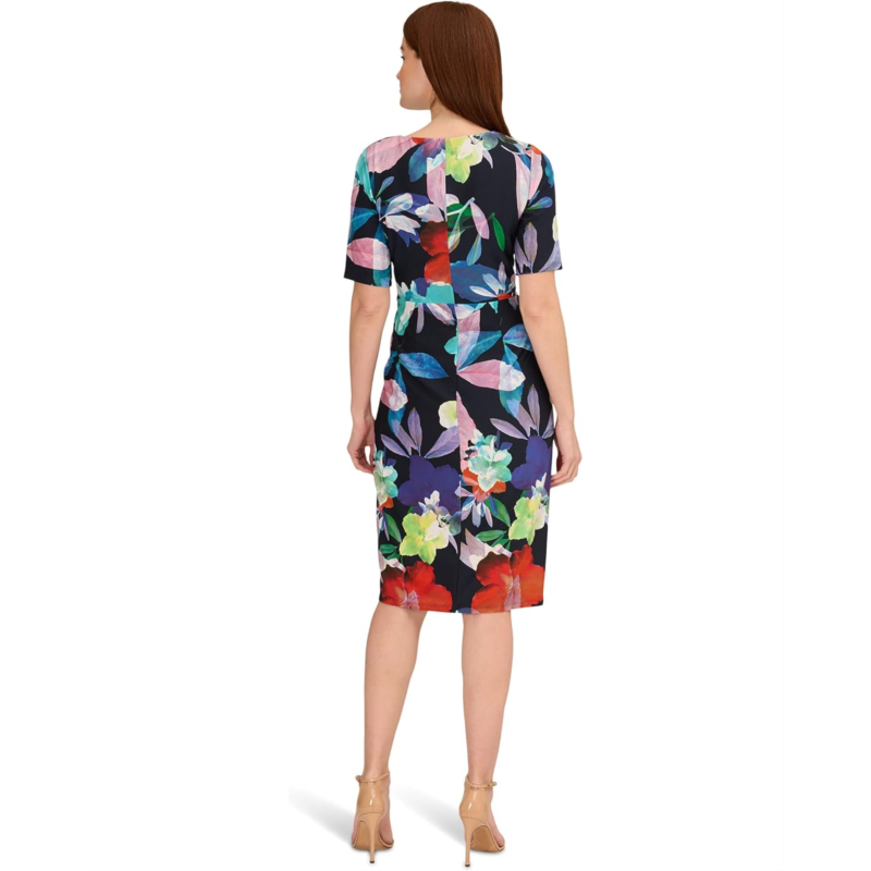 [US] Adrianna Papell Printed Stretch Crepe Chiffon Short Sleeve Side Wrap Dress