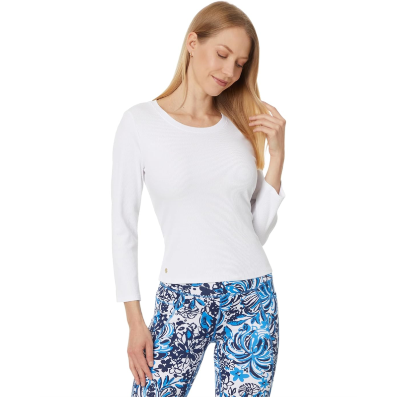 Get ready for a comfortable day out wearing the Lilly Pulitzer Alans Knit Top. The cotton and spandex blend fabric of the top provides a perfect blend of comfort and breathability. This fitted top comes with elbow-length sleeves, a crew neckline, and a straight hem. Ideal for your everyday wear, this cotton top makes a great addition to your wardrobe.