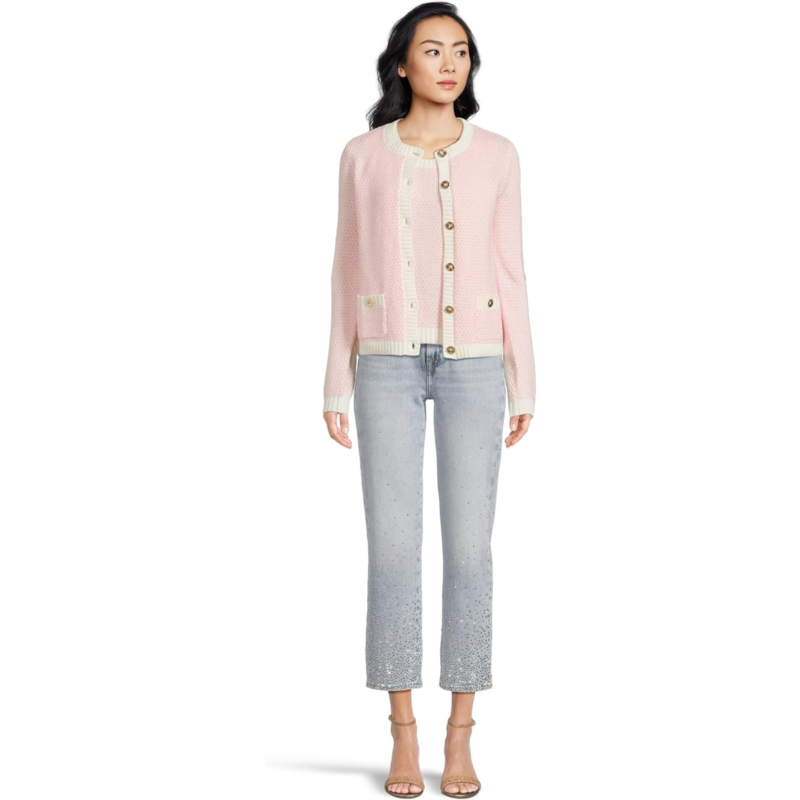 Look classy from chilly days to cozy nights wearing the Lilly Pulitzer Cavan Sweater Set. This sweater set features crewneck cardigan with two pockets with buttons and six buttons at center front with matching shell.