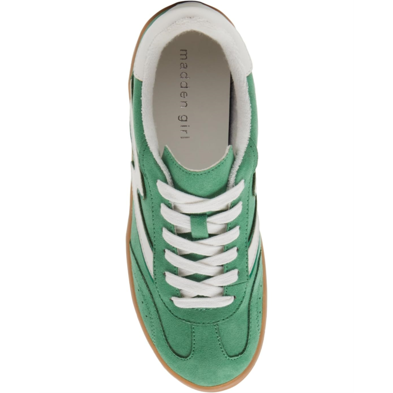 Made for every stride in style, the Madden Girl Giia: suede upper chic, cotton lining comfort, and rubber insole ease in every step. The GIIA sneaker boasts a low-top profile for a timeless athletic appeal, complemented by a plush PVC outsole for durability. With a lace-up closure ensuring a snug fit, these sneakers offer effortless style and support for all-day wear.