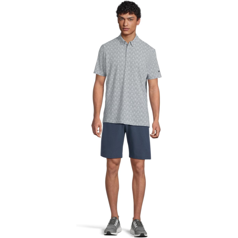 Get set for a fun filled outing wearing the adidas Golf Go-To Printed Stripe Golf Polo Shirt. It features collared neckline with three button placket, short sleeves, allover stripe print, and straight hem with side vents.