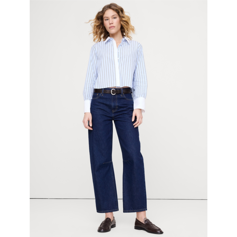Bananarepublic Cropped Cotton Polin Shirt with Elbow Patches
