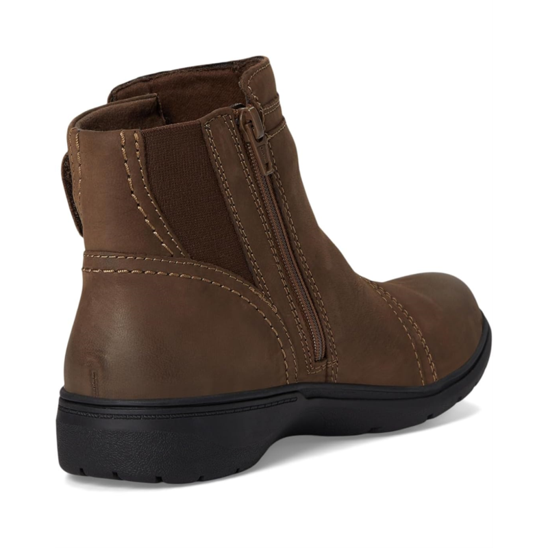 Step out in style with the Clarks Carleigh Style boots. Made with luxurious leather upper and breathable mesh lining, these boots are as comfortable as they are fashionable. The rubber insole provides all-day cushioning, while the eye-catching detail and zippered side closure add a modern twist. Finished with round toes for a classic touch, these boots are versatile enough to pair with any outfit.