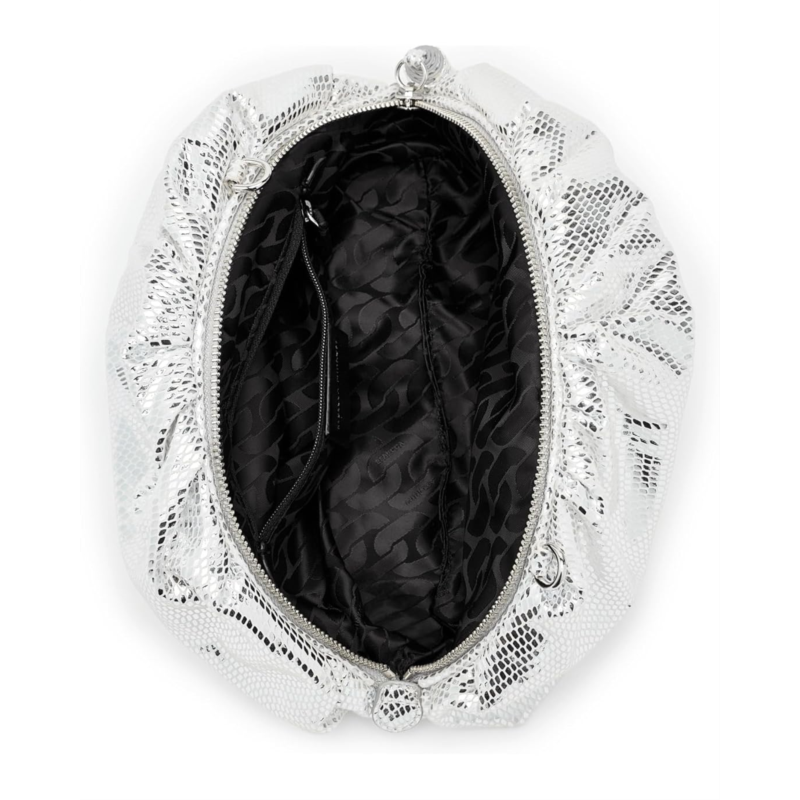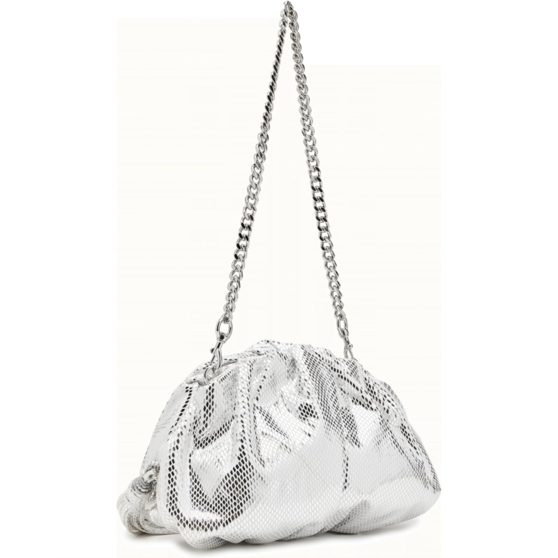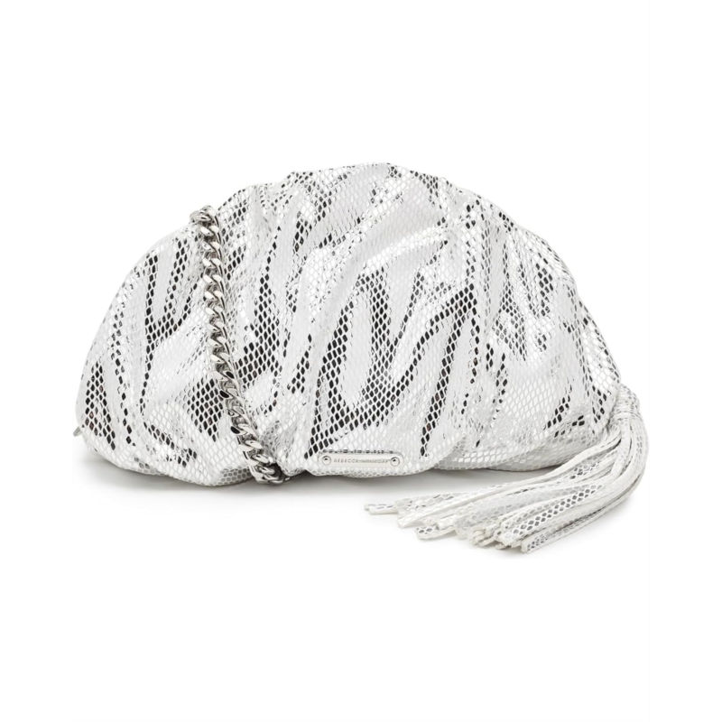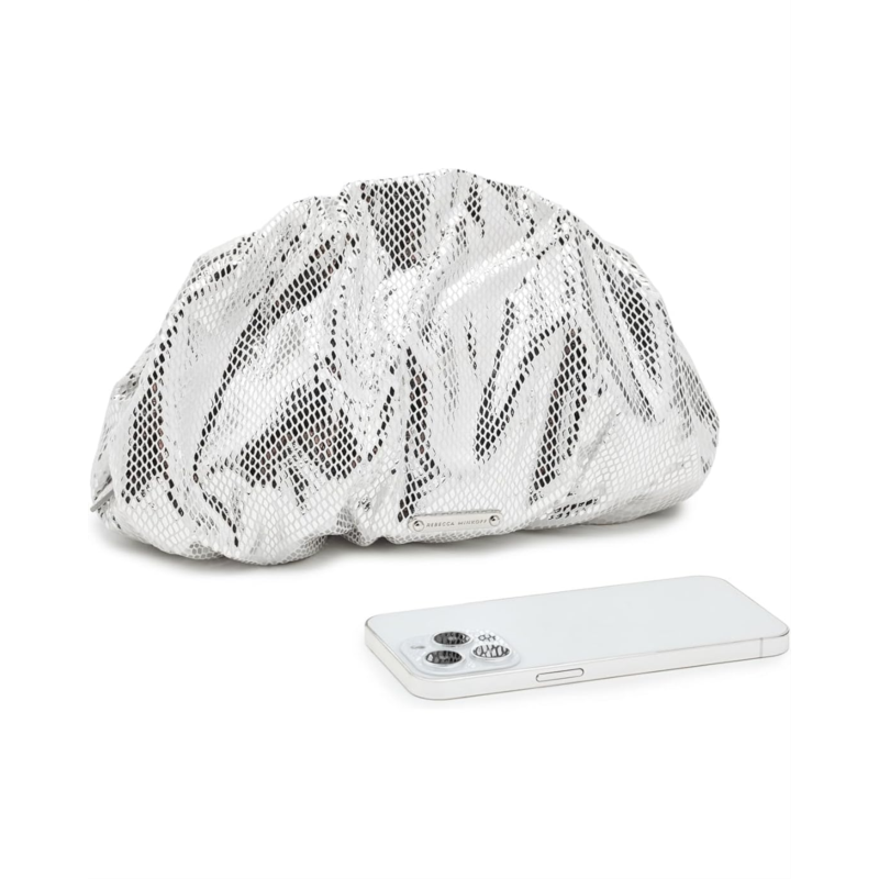 - This Rebecca Minkoff Ruched Clutch Small adds a touch of luxury to your evening attire. Its structured shape is contrasted by soft, ruched detailing, making it a versatile accessory for formal events. The faux-leather bag features a zippered top closure to keep belongings secure and a removable crossbody chain strap for a stylish look.