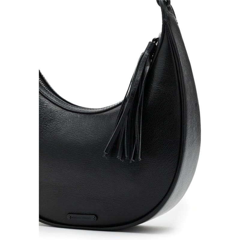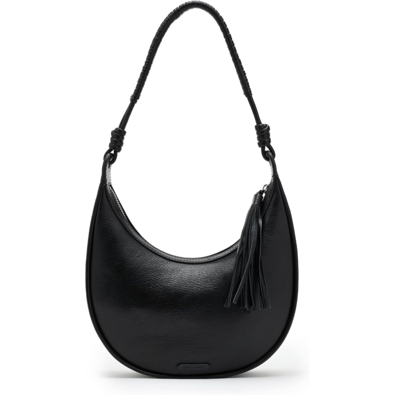- The Rebecca Minkoff Saige Shoulder Bag brings a refined edge to the everyday hobo silhouette. Designed with a softly rounded body and finished with knotted strap details, it hangs comfortably over the shoulder while making a statement with its minimal yet distinctive look. A tassel accent adds subtle movement, balancing its streamlined shape with a touch of playful texture.