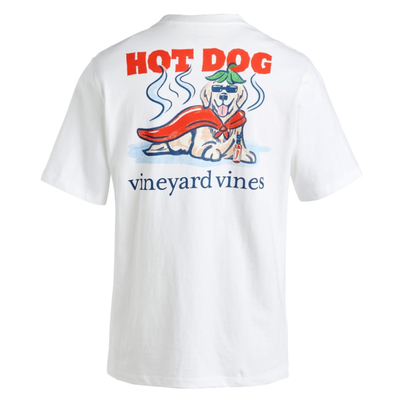 • The vineyard vines Kids Hot Chili Dog Short Sleeve Tee is made from breathable cotton that keeps kids comfortable throughout. Featuring a bold chili and dog graphic print, it adds a lighthearted touch that kids will love.