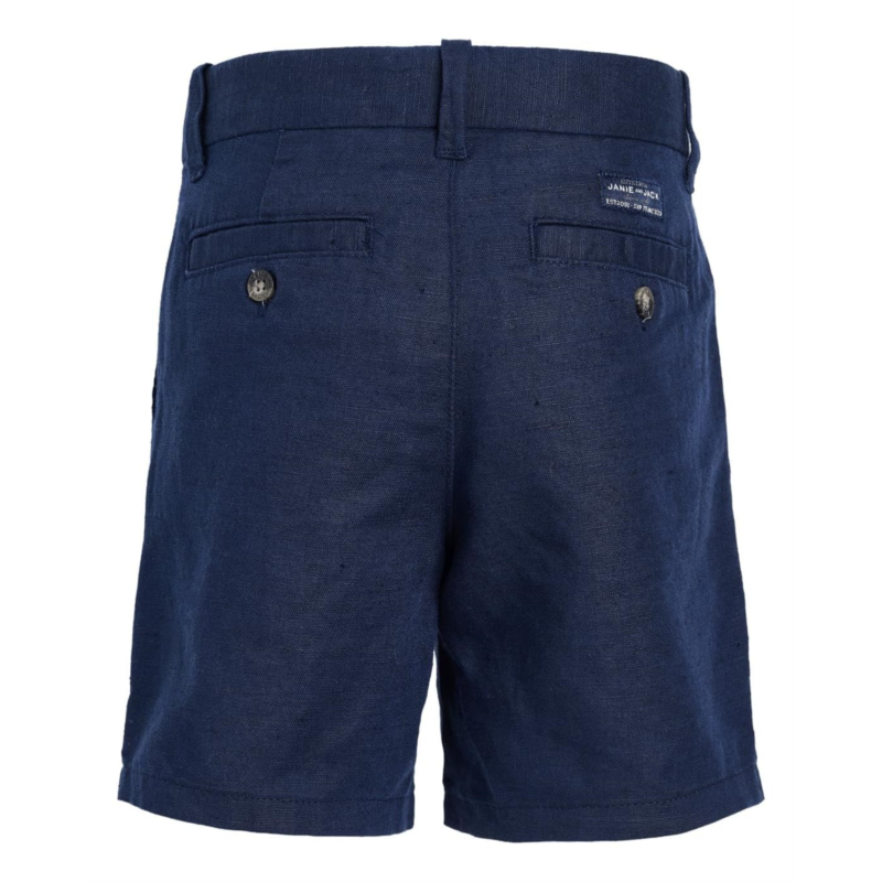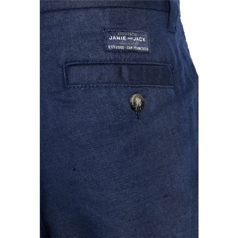 - Effortless class for active afternoons, Janie and Jack Linen Flat Front Shorts. Crafted from breathable linen, these shorts keep him cool while delivering a clean, tailored look that works for everything from family outings to festive occasions. The mid-rise, flat-front silhouette feels timeless yet modern, while the zip-fly with button closure offers a secure, refined finish. Thoughtful belt loops make it easy to dress them up, and the slant pockets plus two back pockets add everyday functionality for little essentials. Designed with a pull-on ease feel that doesnt compromise structure, these shorts strike the perfect balance between relaxed and refined.