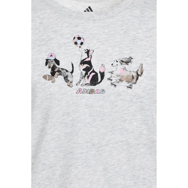 - Let your little one embrace playtime with this delightful adidas Kids Cap Sleeve Heather Tee & Woven Short Set. Featuring a playful trio of dogs roller-skating and playing sports on the tee, this outfit brings a fun mood to school days or weekend adventures. The tee is made with a rib-knit crewneck and curved drop-tail hem, offering both comfort and style. The shorts complement the tee and feature an encased elasticized waistband for easy movement and a snug fit. Finished with the iconic adidas 3 Bar Logo on the shorts for a sporty touch, this set is an easy pick for active kids.