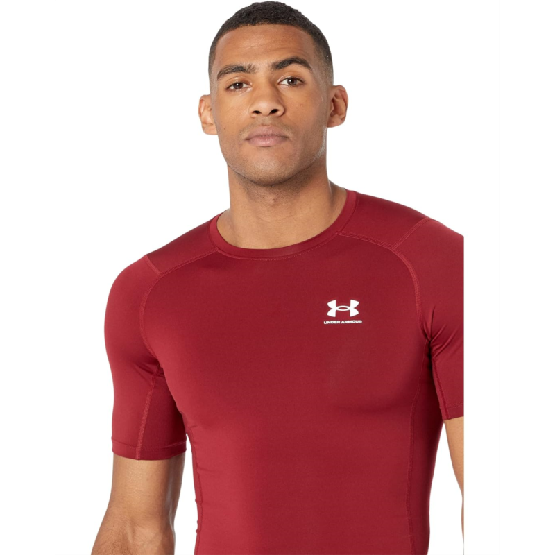 - Make your workout sessions more comfortable and energetic wearing the Under Armour Heatgear Armour Compression Short Sleeve tee. It features hybrid raglan sleeve construction for added range of motion and comfort.