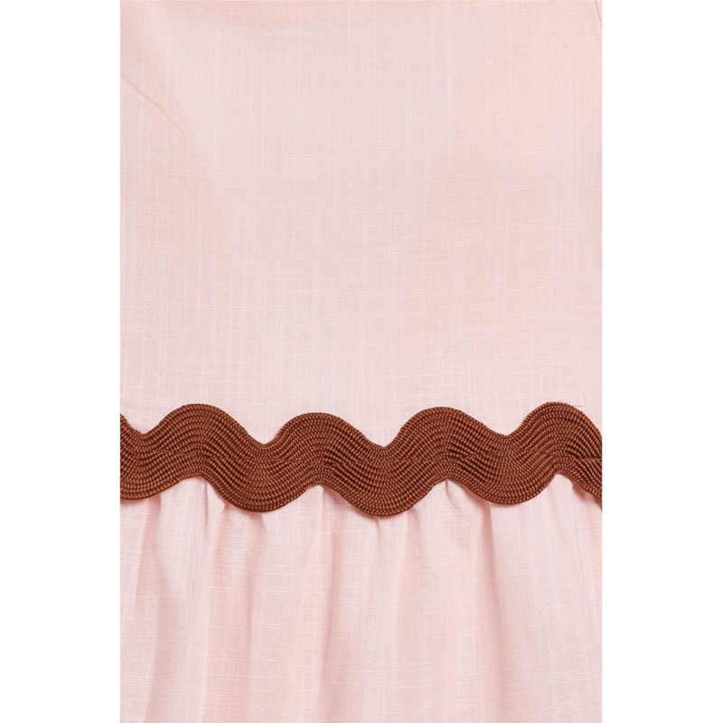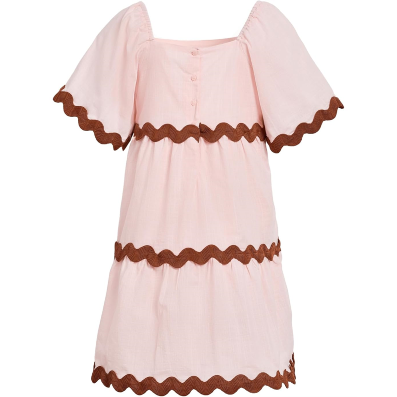 - The Janie and Jack Ric Rac Trimmed Dress is a darling blend of classic elegance and playful detail, made for twirling through sunny celebrations. Designed with a chic square neckline and delicate ric rac trim, it brings vintage-inspired flair to every special occasion. The soft flutter short sleeves add a light, breezy touch, while the above-the-knee length keeps it fun, fresh, and effortlessly comfortable for all-day wear. Fully lined for a smooth, breathable feel, this dress ensures polished comfort from morning brunches to afternoon parties. The thoughtful button-back closure makes dressing easy, while maintaining a refined silhouette that looks beautiful from every angle.