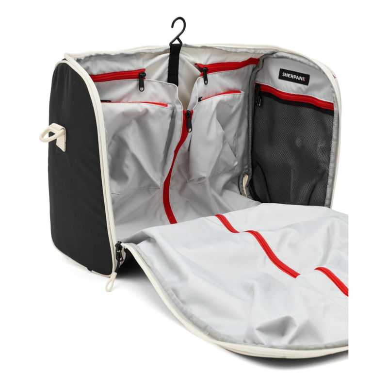 - The ultimate travel shapeshifter, Sherpani Jaunt Garment Duffle. Crafted from durable, water-resistant recycled polyester with a smooth polyester lining, it''s lightweight yet built to last. Inside, one main compartment and six thoughtfully designed pockets, including RFID-protected storage, make organizing easy and secure. A zippered garment bag opening, hanging hook, clothes-hanger loop, compression straps, mesh wing pockets, and lining zippered pockets ensure everything stays wrinkle-free and accessible. Outside, a front zippered pocket with a zipper lock adds peace of mind, while the luggage pass-through makes airport navigation seamless. Multiple strap options, tote handles, and a removable, adjustable crossbody strap offer versatile carry.