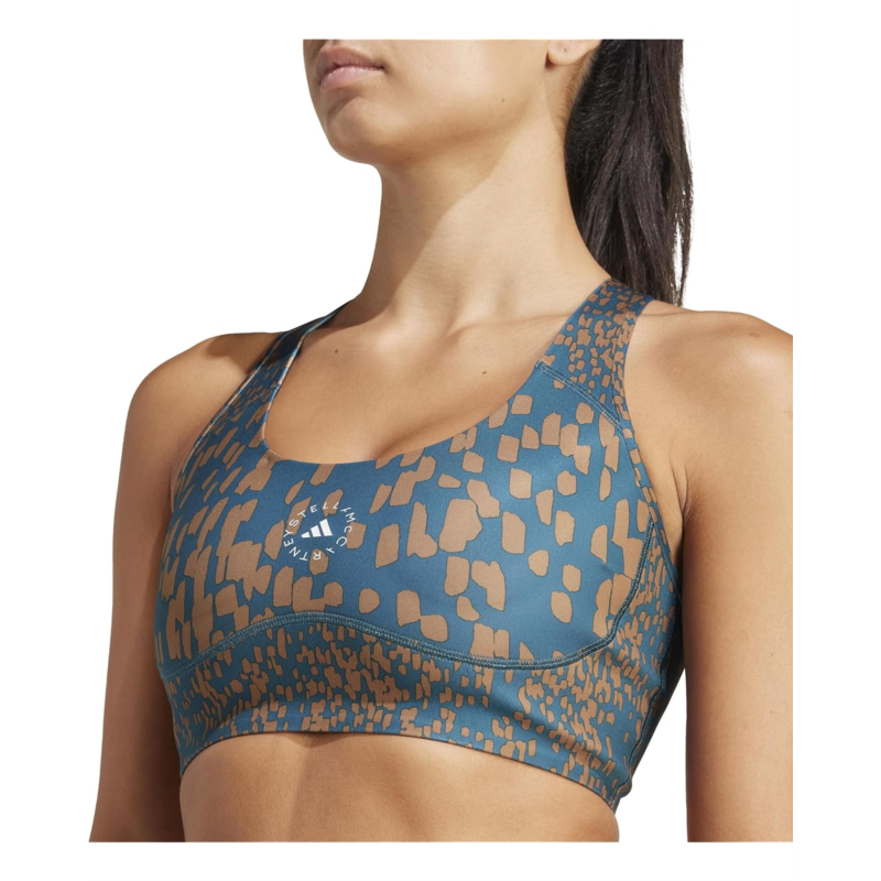 - Sweat it out in ultimate style and comfort wearing the adidas by Stella McCartney TruePurpose Power Impact Training Medium Support Bra IQ4521. Engineered for maximum performance, this fashionable bra features an easy pullover style with laser-cut perforations that let the air flow for breathable comfort. Tailored in a tight fit with medium support, it impresses with the timeless racerback design and the eye-catching print all over.