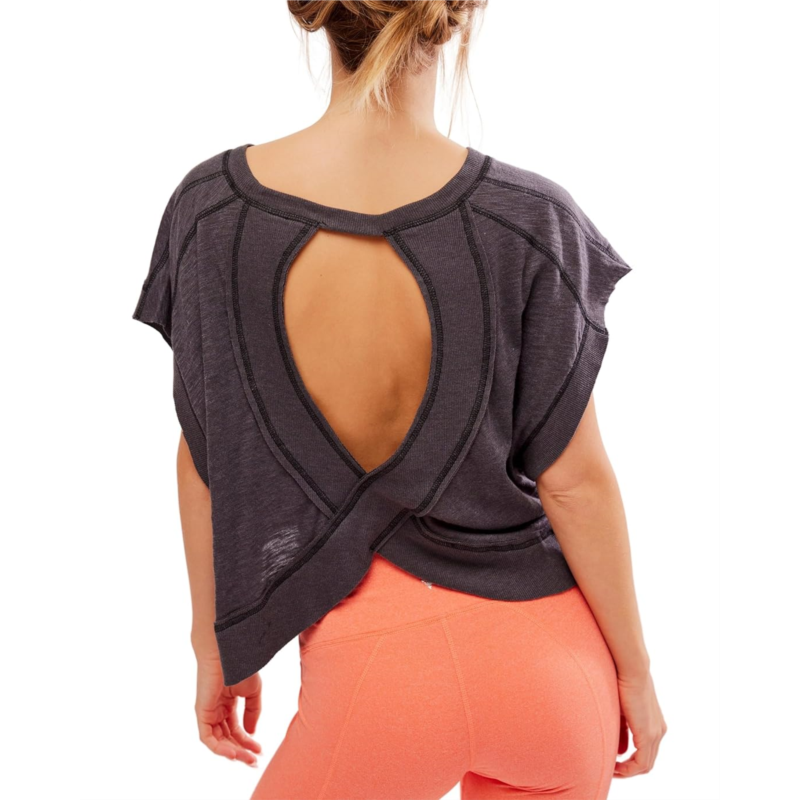- Get ready to feel comfortable and confident wearing the FP Movement My Time Tee. This must-have tee boasts a wide crew neckline and dropped short sleeves for a breezy, laid-back look. The wrapped cutout back with an open silhouette adds a playful twist to your outfit. Perfect for everyday wear or your next workout routine.