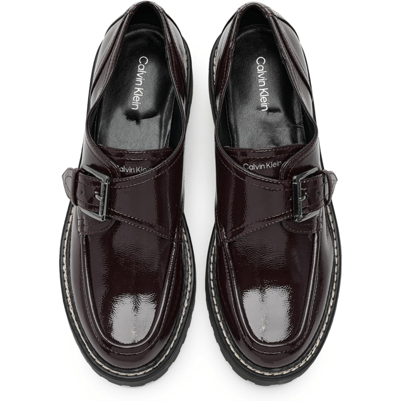 - The Calvin Klein Saundee loafers are a great choice to match your casual and formal outfits. These slip-on shoes are made of a man-made upper, insole, and lining. The adjustable buckle strap offers a secure fit. Dress up for any occasion with these heeled loafers.