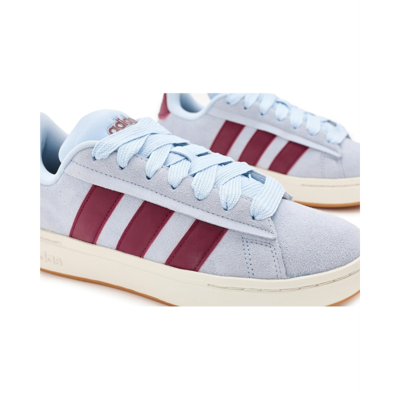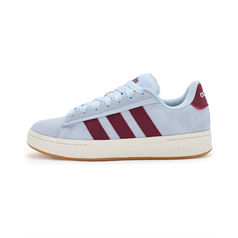 - Exude a sporty street style wearing the adidas Grand Court Alpha Shoes, designed in a low-top silhouette with lace-up details. The shoes feature a synthetic leather upper with signature three-stripe branding, textile lining, rubber insole, and a Cloudfoam midsole.