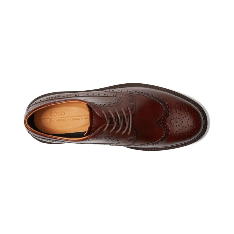 Enjoy a comfortable fit and soft feel by wearing ECCO London Wing Tip Oxford shoes. The premium smooth ECCO cow leather upper is durable. Removable dual-fit insoles for a wider fit and roomier toe area. Soft textile lining with leather collar for a cushioned in-step.