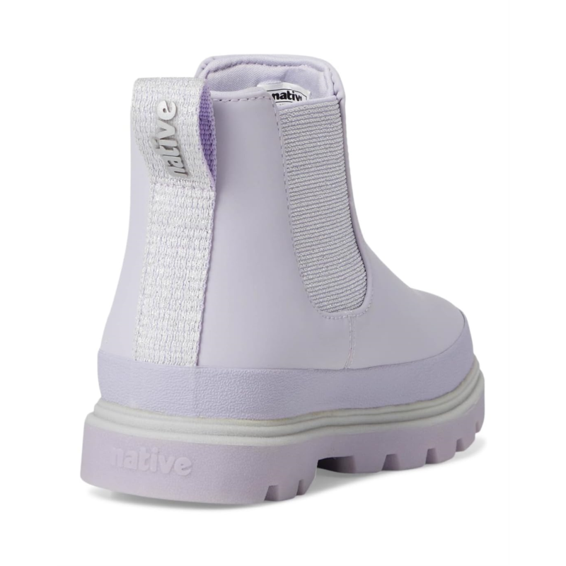 They''ll be ready for any adventure in the Native Kids Shoes Kensington Chelsea Glitter boots These pull-on style boots offer a polyurethane upper with stretchy elastic side panels, round toe silhouette, pull tab in back for easy entry, and an open cell foam insole.