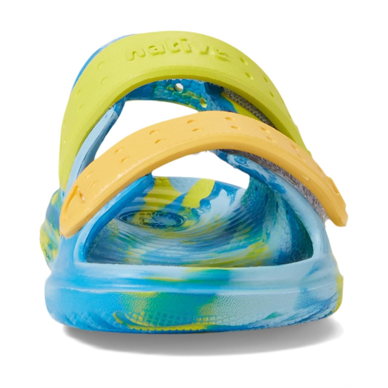 Embark on a style odyssey with Native Shoes Kids Chase Marbled! Unleash their inner explorer in these uniquely marbled wonders, crafted without glue for lasting adventures. Two adjustable straps provide a secure fit, while the water-friendly design, synthetic insole, and grippy tread ensure comfort and stability for tiny feet.