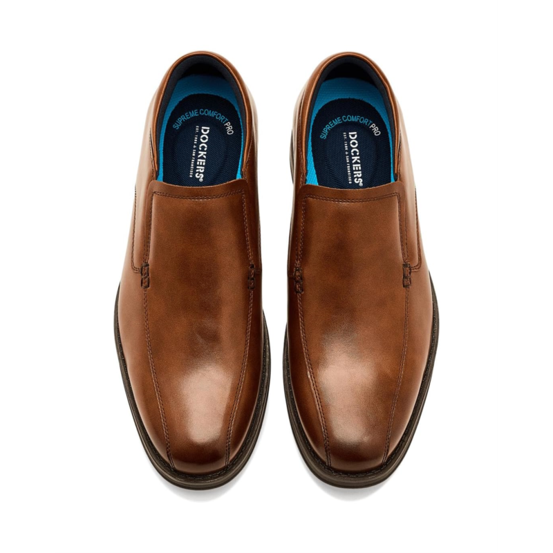 - The Dockers Benedict loafers are the easy choice when your day moves from desk to dinner, and you want comfort that keeps its polish. These dress-casual loafers are built around responsive engineering that supports every stride without asking you to slow down. Their Dockers Active Rebound rubber outsole supplies lively step-return and steady underfoot support, so long agendas and quick detours feel the same underfoot. A PRO-grade Supreme Comfort ethylene vinyl acetate footbed adds plush cushioning with a gentle massaging forefoot texture that helps reduce fatigue as the hours stack up. These slip-on shoes are made of a moisture-wicking polyester lining that manages heat and sweat, while a quilted microfiber counter softens heel contact for a calm, composed fit. Beneath it all, a full rubber soleplate provides confident traction on lobby marble, slick sidewalks, and everything in between. The silhouette reads refined and modern, pairing as naturally with tailored trousers as it does with dark denim. Their faux leather upper makes them a durable choice. If you want a mens shoe that looks sharp and performs all day, these leather loafers will keep you comfortable and collected from first step to last.