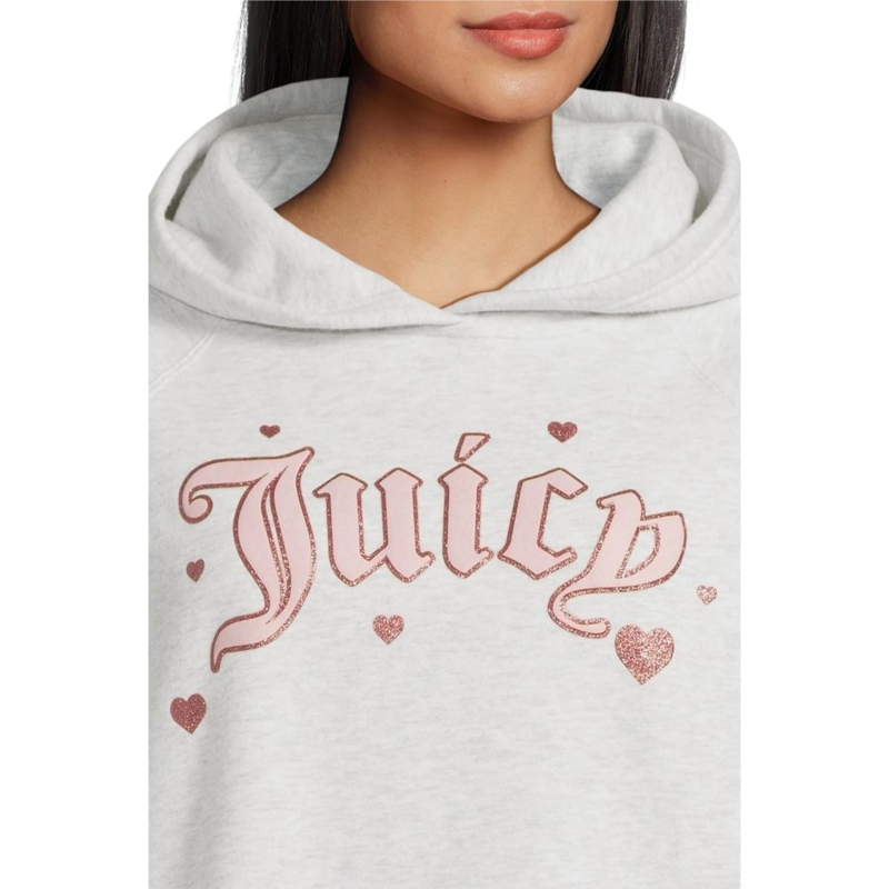 This hoodie is the perfect everyday lounge sweatshirt. It has puff hotfix ''Juicy'' on both the front and back.