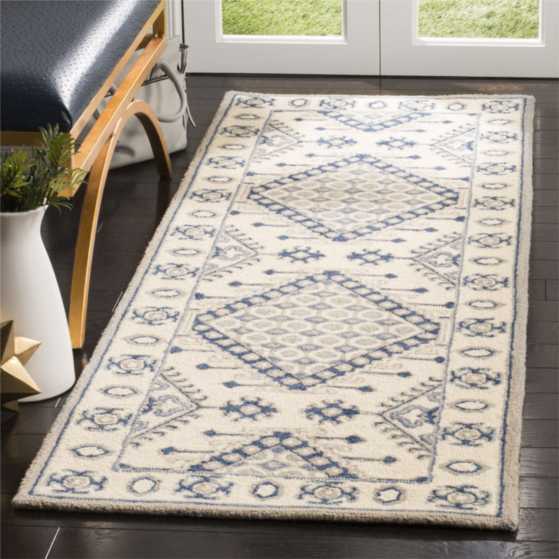 Safavieh micro-loop hand made area rug ivory / blue traditional style non-shedding