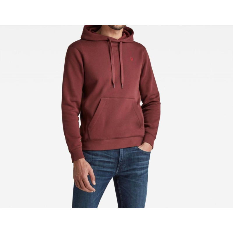 Elevate your casual wardrobe with the Premium Hooded Sweater by G-STAR RAW in a solid Paccio hue. This long-sleeve piece is crafted from soft cotton, featuring a hood with cross-over front and ribbed triangle inset piece for added style. It boasts a kangaroo pocket, ribbed side panels, cuffs, and a waist for a comfortable fit. Closure is pull-on, and it is machine washable, making it both stylish and easy-care. The subtle G-STAR RAW embroidery at the chest adds a touch of sophistication.