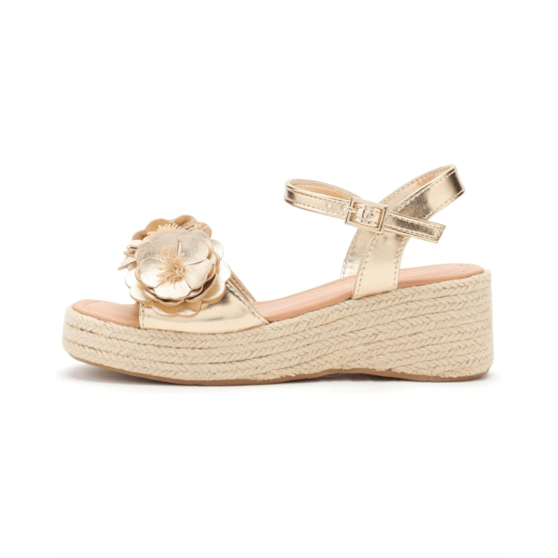 - Charming and refined, the Nina Kids Mercy Mary Jane is designed to deliver graceful style with kid-friendly comfort. Featuring an open round toe, flowers detailing on the vamp, ankle strap, buckled closure, and wedge heels. Perfect to pair with your kids party outfits, these sandals make a great addition to your kids footwear collection.