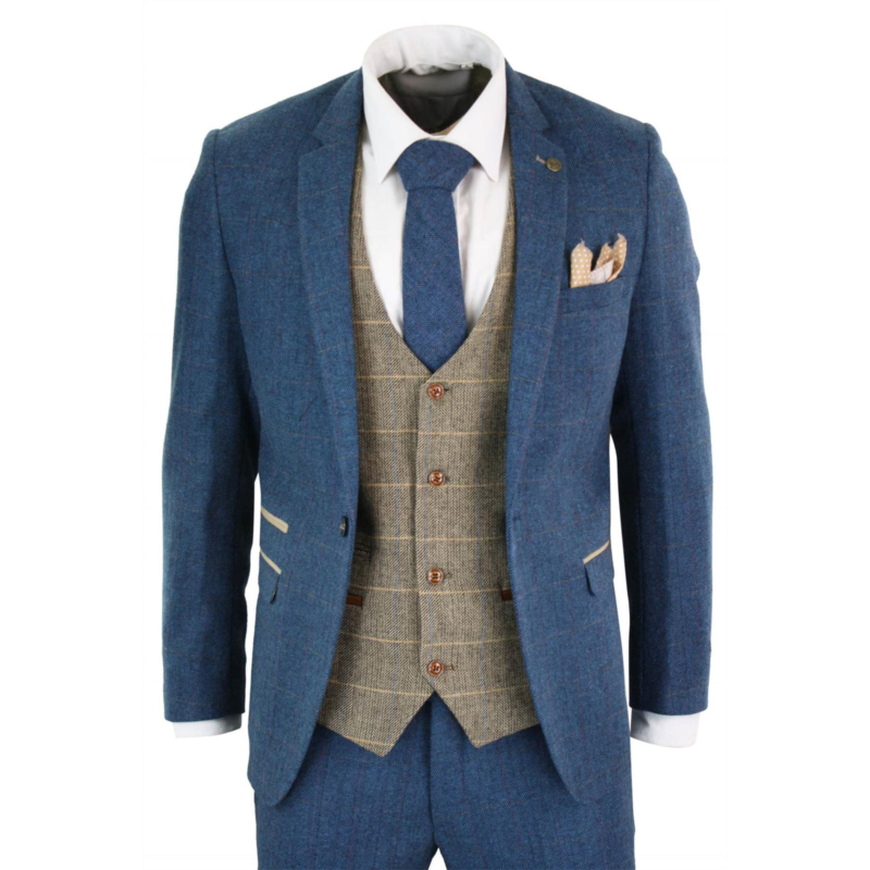 Oliver Tweed mens 3 piece blue Tweed vintage suit