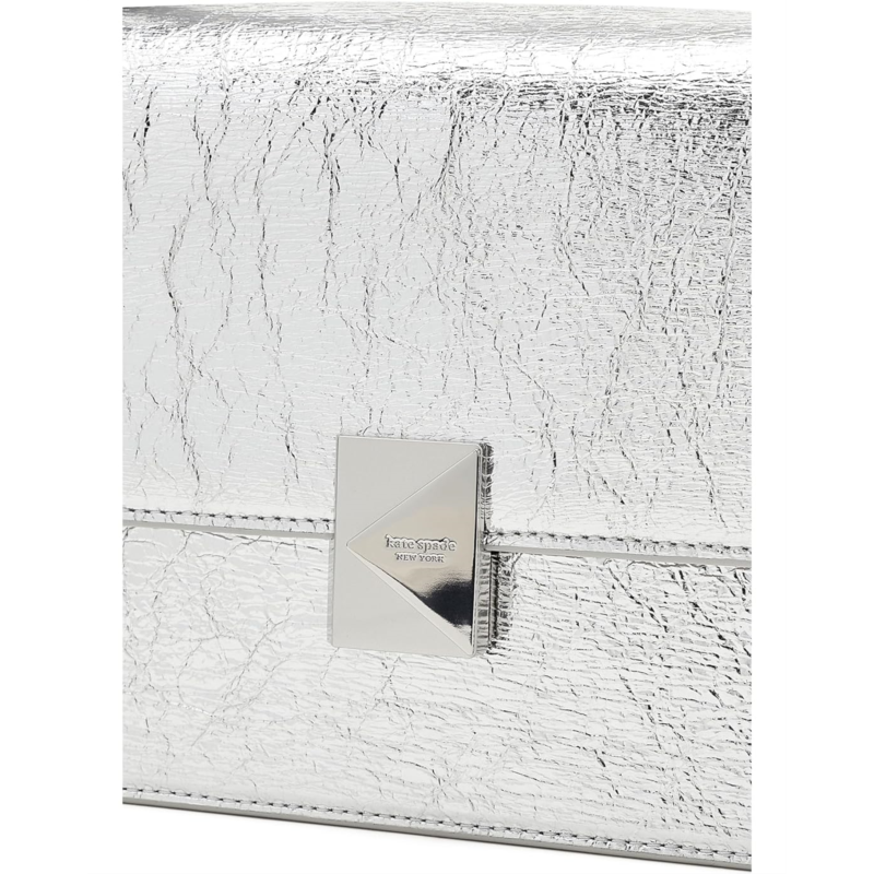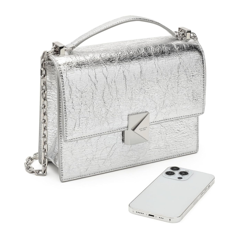 - Add a glamorous look to your outfits and styles with this Kate Spade New York Deco Crinkle Metallic Leather Chain Shoulder purse. Made from crinkled metallic leather, this shoulder bag comes with a top grab handle and a convertible shoulder to crossbody chain strap. Its magnetic snap closure opens to an interior compartment that can fit an iPhone Pro Max, a zip-around continental wallet, an iPad, or a 14'' laptop. This leather purse is designed with an interior zippered pocket and an interior slip pocket. Style with Deco K hardware, this metallic purse makes a versatile addition to your bag collection.